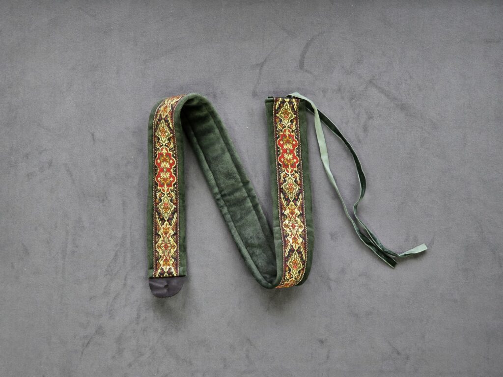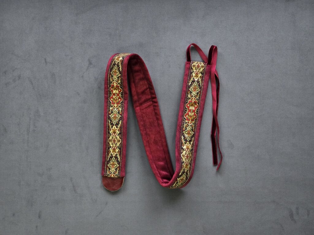 Here you can buy straps for early plucked instruments such as lutes, theorbos, archlutes, Renaissance and Baroque guitars, romantic guitars, vihuelas, etc. Straps are available in 1 m and 2 m lengths. The strap end is made of genuine leather and features a 7 mm hole. It also includes a small slit next to the hole, allowing it to fit larger strap button pins. Made from non-slip material. 2-meter straps available soon.